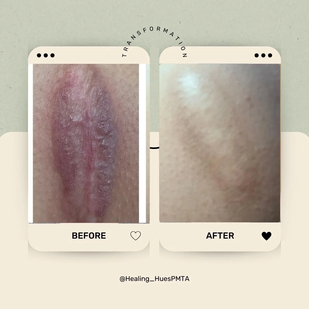 “I’m seriously blown away by the stretch mark treatment at Healing Hues! I was a bit unsure at first, but Kelsey made me feel right at home and walked me through the whole process. My stretch marks are so much lighter now—it’s like they’re barely even there! I feel way more confident, and I’m so glad I did this. Huge thank you to Kelsey!”